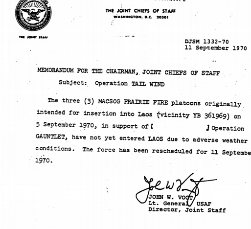 NOTE: The documents shown in "CIA OPERATION GAUNTLET" (below) clearly show that Operation Tailwind was conceived as a diversion for the CIA mission.